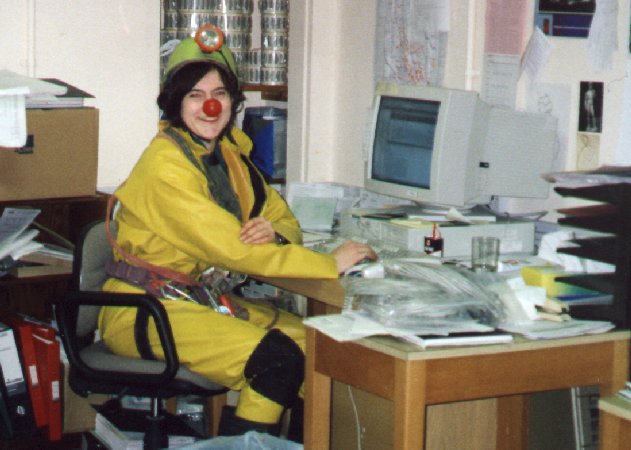 Joanne whistler risking mockery and heatstroke on Red Nose day.